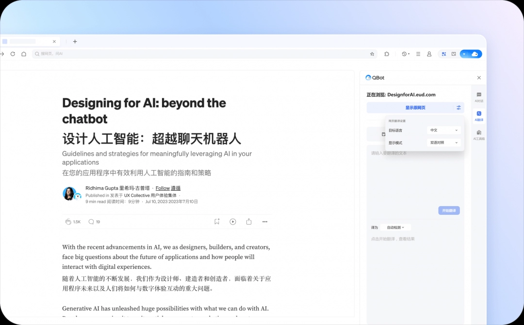 在浏览网页或文档时,打开QBot对话框,可使用多种阅读工具,提高信息处理效率。