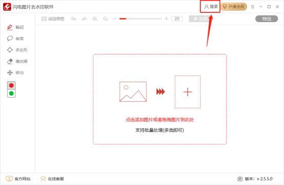 支持标记、套索、多边形、橡皮擦、移动等功能,去除水印更方便。