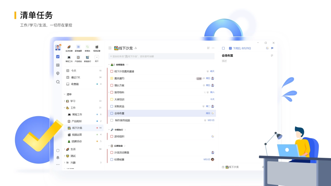 滴答清单是一款记录待办事项、管理日程提醒的效率类应用,支持多平台同步,帮助你随时随地制定工作计划、安排行程规划、设置会议提醒、管理学习任务,集待办清单、番茄工作法、打卡、日历、备忘、笔记、共享协作等多种实用功能于一体,对该软件网页版感兴趣的用户千万不要错过,快来下载吧!