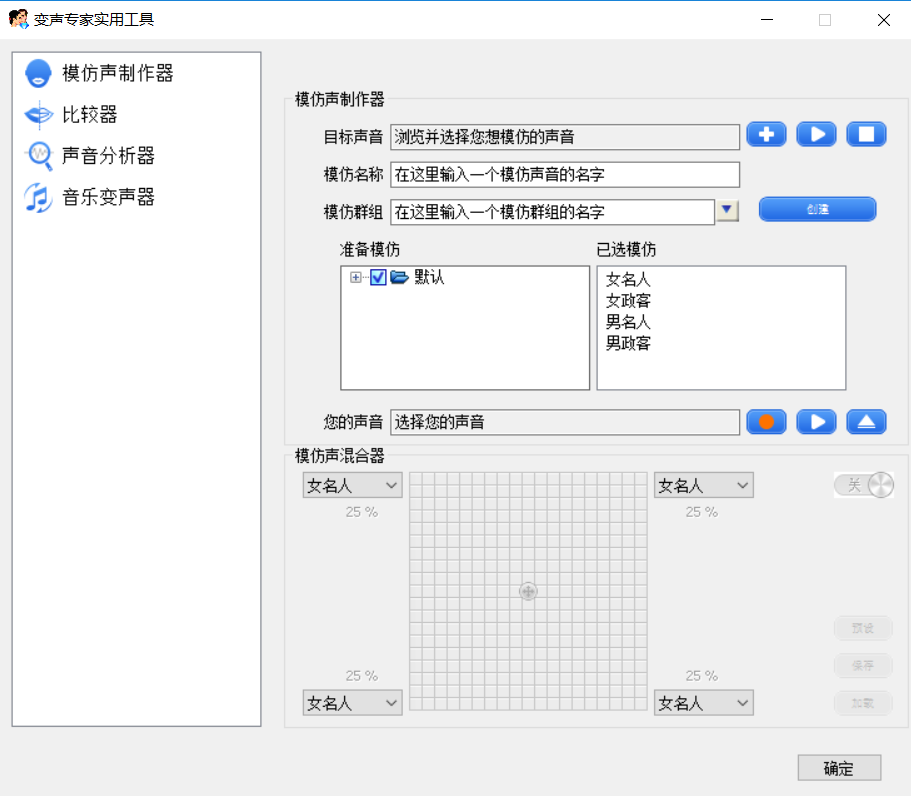 2、非人类假声和声音特效调至一个经典风格的窗口中展示,便于更好的控制各种实时语音变声会话。