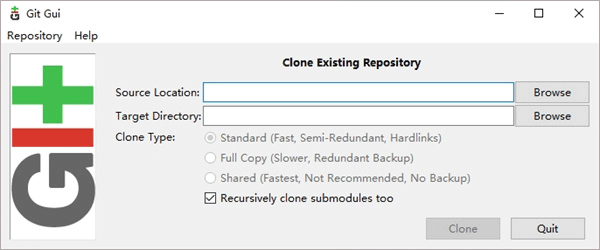 Git gui是一款功能强大的分布式版本控制软件,软件非常实用,操作非常方便快捷,采用了分布式版本库的作法,不需要服务器端软件,就可以运作版本控制,支持本地文件配置,可以对文件内容进行克隆,提供了可视化的界面,并让Git的操作更加简易和方便,大大提高开发者的工作效率,有需要的小伙伴赶快下载体验吧!
