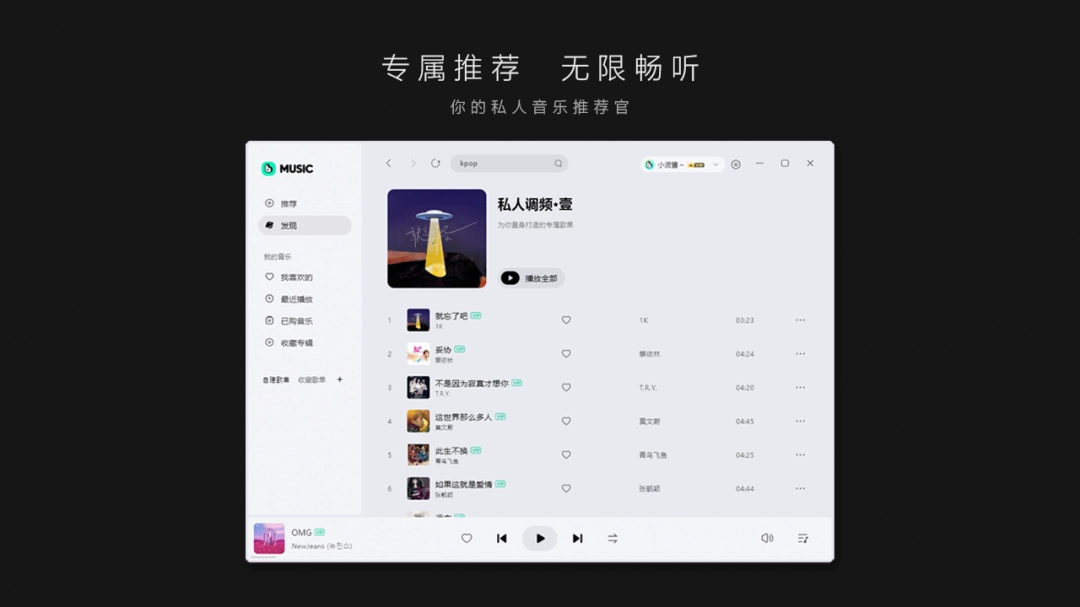 根据自己的喜好个性化推荐好音乐。