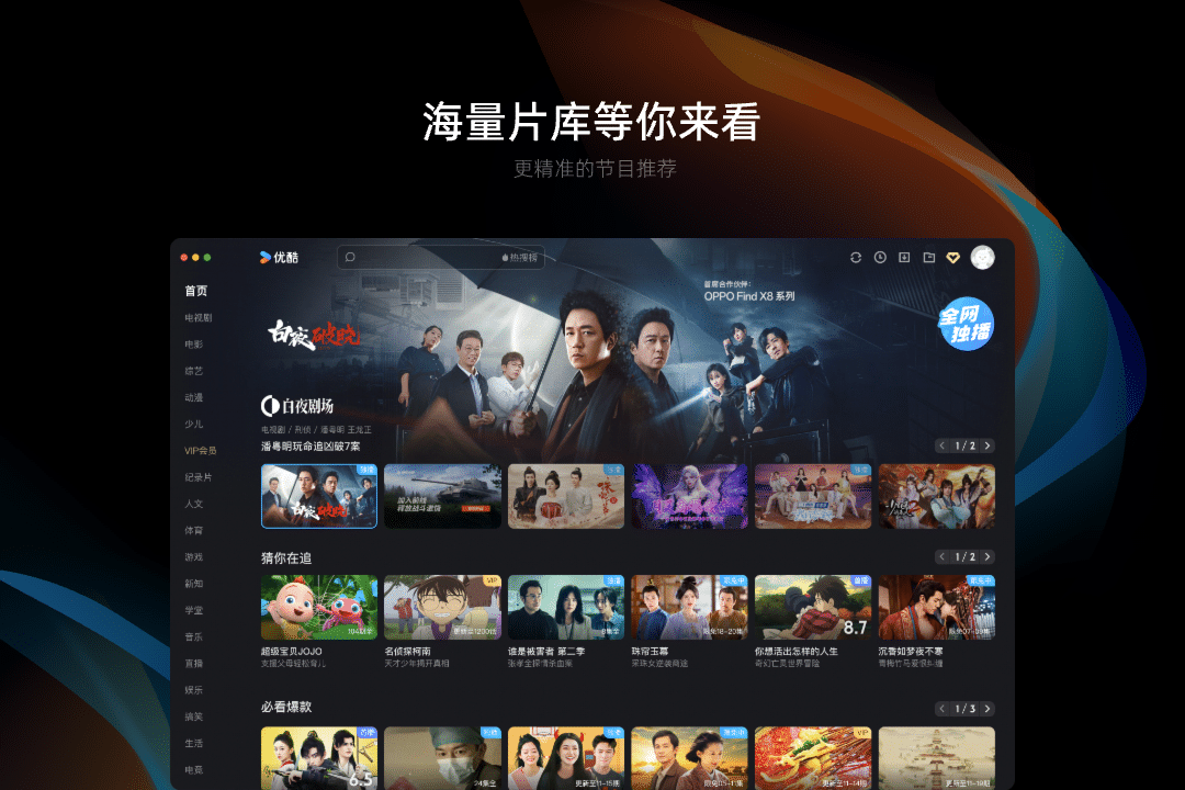 6、会员服务:优酷VIP会员可享受广告、高清观看、提前观看等特权。