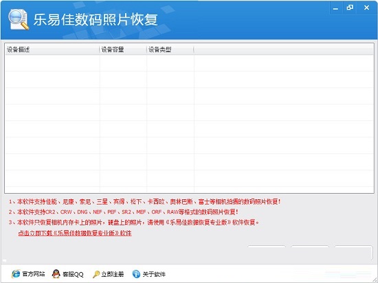 下载乐易佳数码照片恢复是一款非常实用的相机内存卡数码照片恢复软件,软件功能强大,操作简单易用,支持多种不同的数码设备,包括佳能、尼康、三星、松下、卡西欧、奥林巴斯等,还支持JPG、CR2、CRW、DNG、MEF、ORF、RAW等格式的数码照片恢复,满足用户的各种使用需求,有需要的小伙伴赶快来下载体验吧!