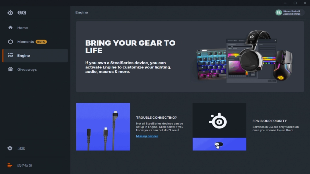 连接一个支持SteelSeries Engine的设备,开始您的定制。