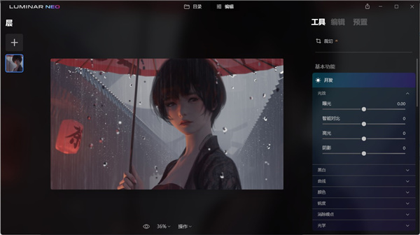 Luminar Neo是一款非常实用的图像编辑软件,软件功能强大,操作简单易用,提供多项新功能,包括图像层、背景替换、重新照明选项、除尘等,支持一键天空替换(自动识别并智能融合水面倒影与场景光线)、AI降噪(在去除低光噪点的同时保留细节)、AI水景增强(优化水面波纹与反射效果)以及AI人像修饰(自动瘦脸、皮肤美化、眼神增强)等功能,支持多种文件格式,包括 RAW、JPEG、PNG 和 TIFF 等,满足用户的各种使用需求,感兴趣的小伙伴快来下载体验吧!