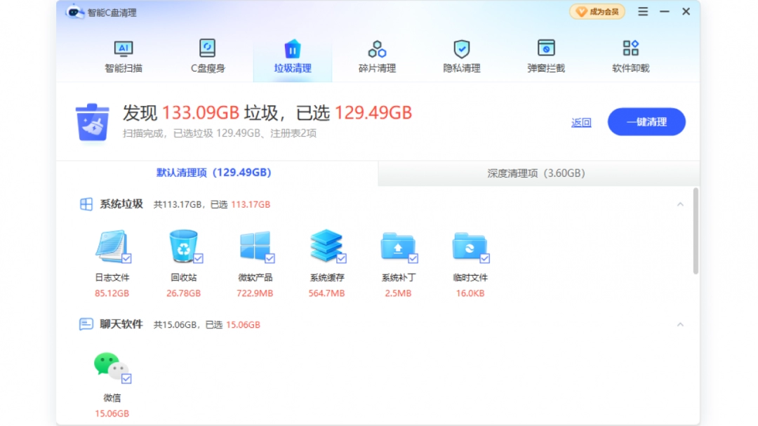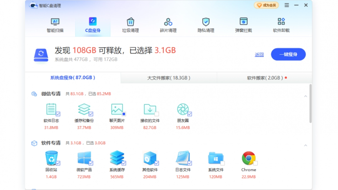 持续提升C盘瘦身的清理能力,释放更多可用空间。