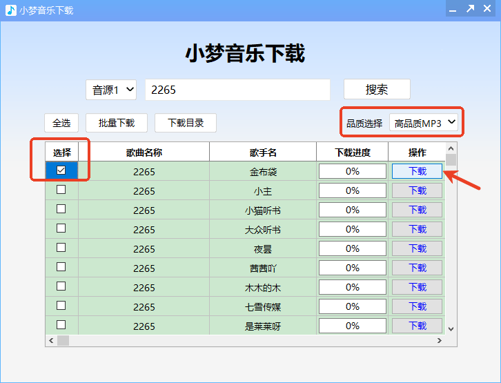 5、批量下载功能:支持按音质选择,批量下载所需音乐,省时高效。