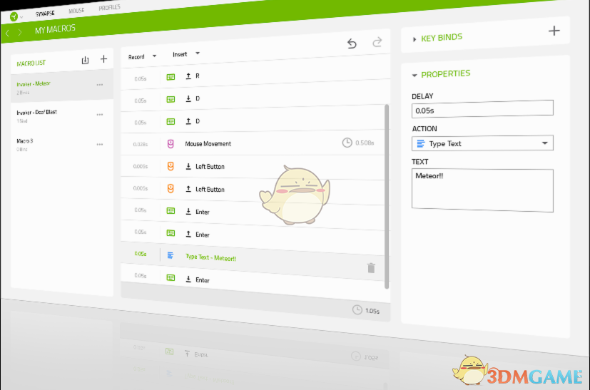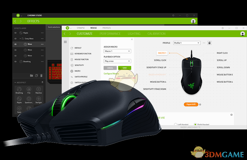 Razer Synapse雷云3可让你创建一系列复杂的按键动作,让你在点指之间即可准确执行制胜的按键组合操作。