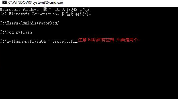 3、更新显示卡BIOS的参数为「nvflash -4 -5 -6 xxxx.rom」;xxxx.rom为BIOS名。
