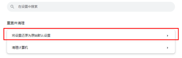 4、那么在右侧的页面中就会出现重置并清理的相关选项,我们选择【将设置还原为原始默认设置】点击进入。(如图所示)