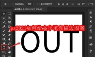 ps是一款深受用户们喜欢的设计修图的工具,是大部分用户必备的软件之一。这里为大家带来如何给文字填充描边图案的详细步骤分享,想了解的小伙伴快一起来看看吧! ps2021如何给文字填充描边图案首先,在ps2021中,用【文字工具】输入需要的文字,比如:OUT。 然后,选择OUT的文字图层,然后在【图层】-【图层样式】中找到【描边】。 接着,把描边大小设置为【10】像素,位置选择为【外部】,然后在填充类型里选择为【图案】。 接着,在图案里面选择草的图案。 随后,我们可根据自己的需要调整角度,比如:165度,点击【确定】。 最后,我们把文字的颜色设置为白色,这样文字填充描边图案就做好了。
