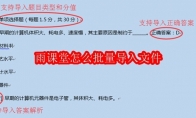 雨课堂软件中,我们可以导入文件、ppt、试卷等内容,同时还可以进行批量导入文件。那么,你知道具体如何操作吗?这里为大家带来详细的介绍,想了解的小伙伴快一起来看看吧! 雨课堂怎么批量导入文件(1)批量导入是指老师在制作PPT课件或者试卷时,批量导入Word格式习题的功能。不设置固定的习题模板,但建议老师将习题设置为下图中的类型。(目前雨课堂V2.1版本中单选、多选、投票、主观题、判断题以及填空题题全部支持批量导入,未升级到V2.1版本的用户仅支持单选题和多选题的批量导入;填空题批量导入,需要满足插件端版本是V3.0或以上)单选题: 多选题: 投票题: 主观题: 判断题: 填空题: (2)批量导入方法① 打开需要导入题目的PPT课件或试卷,在导航栏中点击进入雨课堂;② 点击插入题目的【批量导入】按钮,选择【文件导入