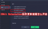 IObit Uninstaller软件更新提醒怎么开启?IObit Uninstaller软件更新提醒可以通过设置选择关闭或者开启。很多小伙伴还不知道IObit Uninstaller软件更新提醒怎么开启,下面给大家整理了IObit Uninstaller软件更新提醒设置攻略,让我们一起来看看吧。IObit Uninstaller软件更新提醒怎么开启1、双击打开软件,点击右上角的三条横线图标。 2、接着选择下方选项列表中的"设置"。 3、进入新界面后,点击左侧中的"通知",然后找到右侧中的"有软件更新的时候通知我",将其小方框勾选上就可以了。